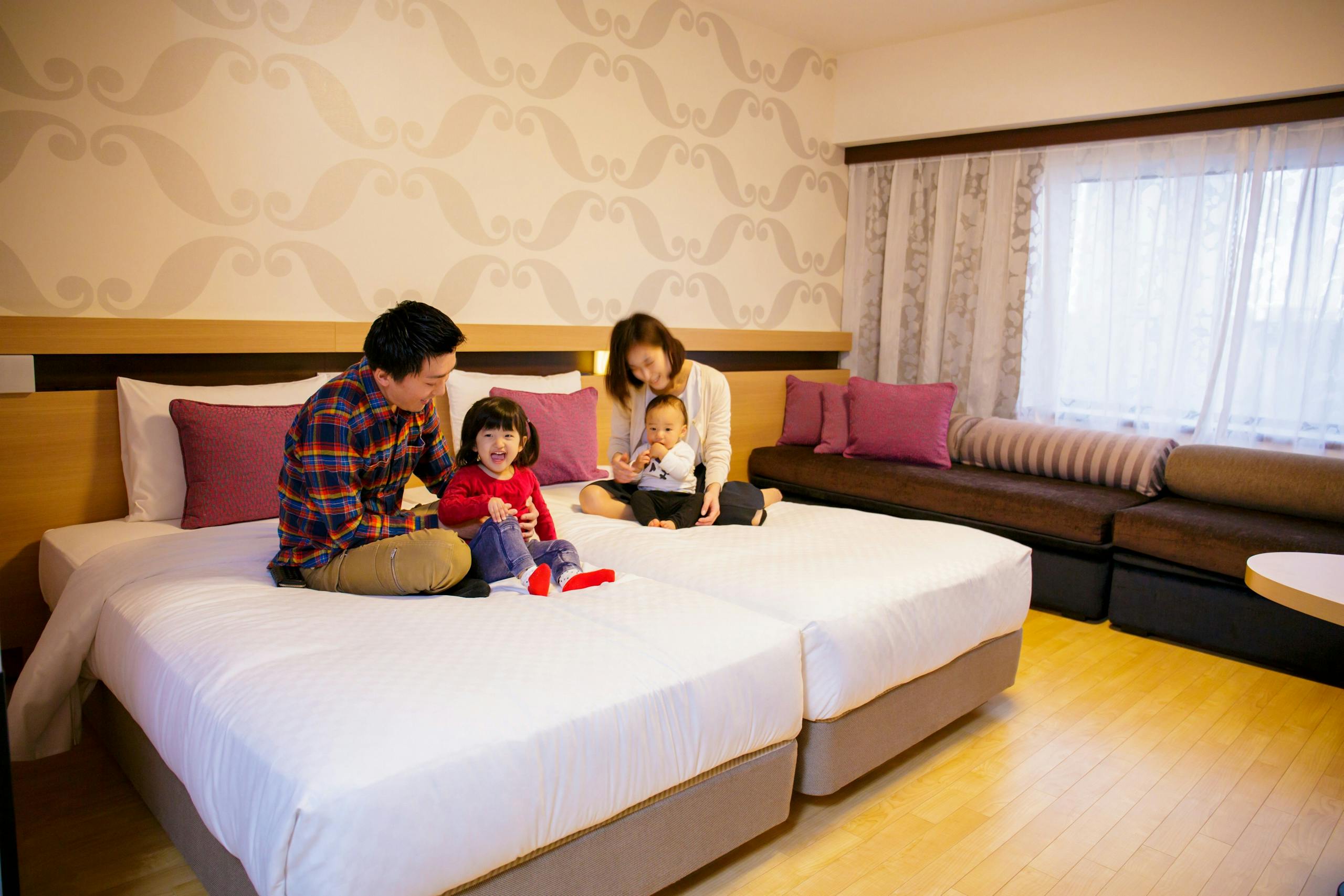 最大5名まで宿泊できるファミリールームは、大人数での滞在に最適です。明るい雰囲気の客室は、リラックスして過ごせる空間を提供してくれます。
