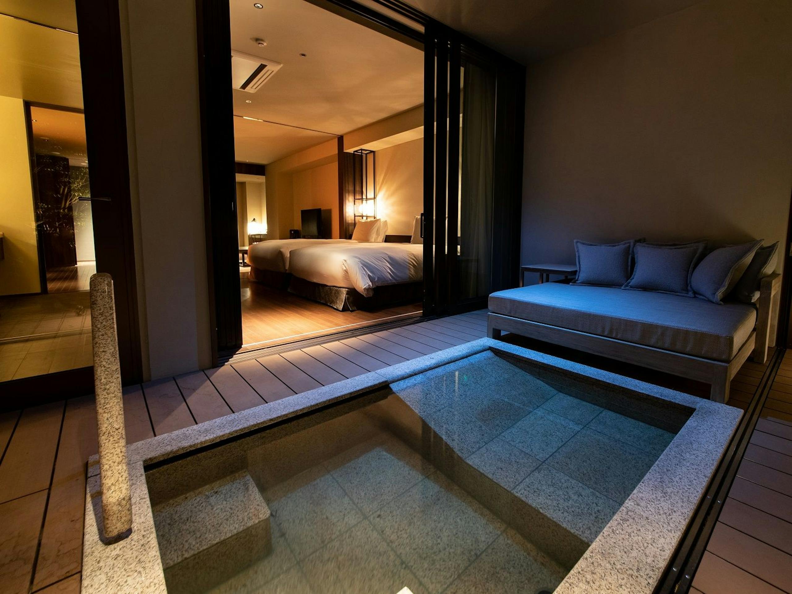 引用:木の温もりを感じるモダン和風の空間が特徴です。箱根・強羅の自然と調和するデザインで、落ち着いたトーンの内装が広がります。全室に温泉が備わっており、テラス付きの客室もあります。森に囲まれた環境のため、視線を気にせず過ごしやすいのも魅力です。