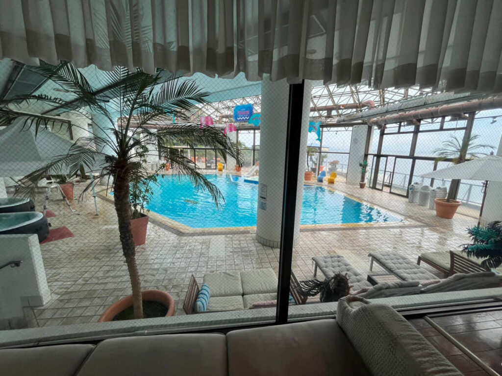 ホテルカターラの屋内プールはとても広く、チェックイン前の12時から利用できるのが大きな魅力。私たちは13時ごろに到着したのですが、部屋の鍵もすでに受け取ることができ、スムーズにプールを楽しめました。