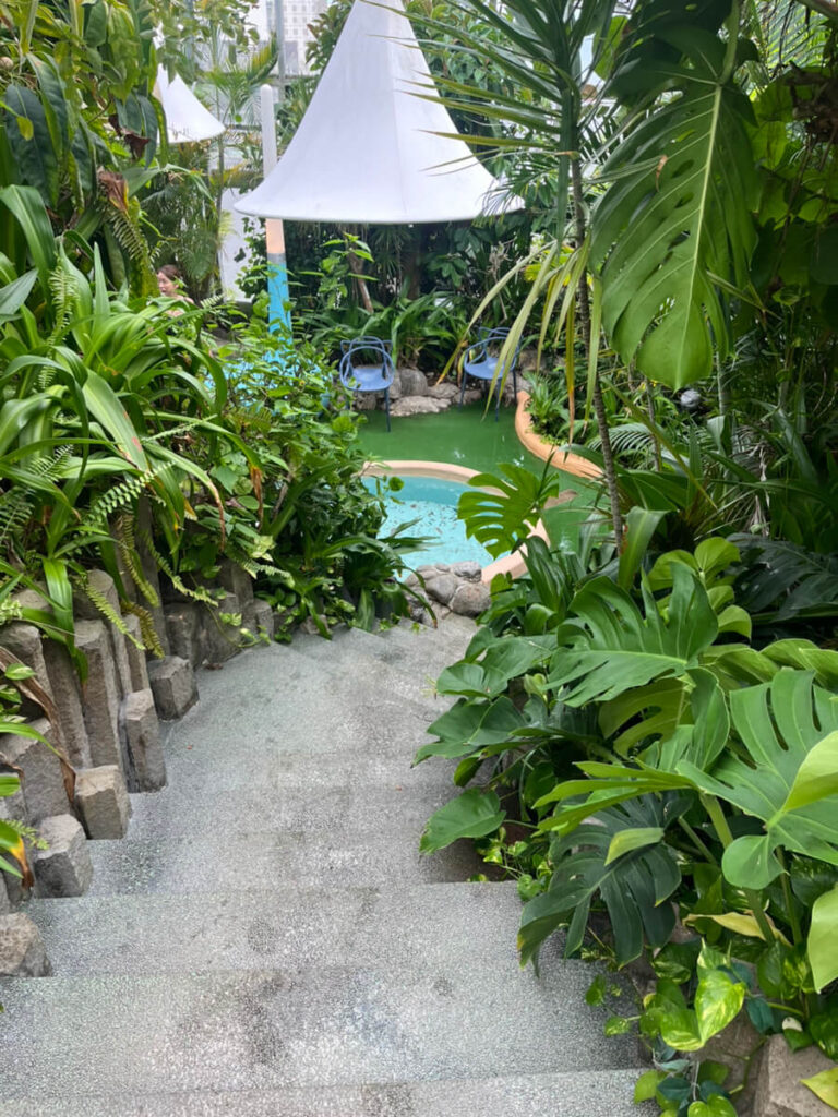 また入口は男女別の更衣室からジャングルSPAにいくこともできます。なのでプール後にジャングルSPAにいって終了する方はプールの更衣室からタオル着替えの一式を持っていくと楽ですよ!