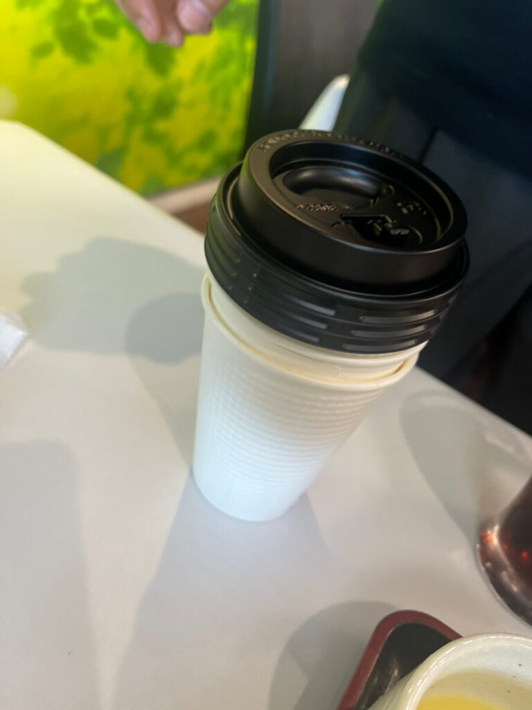 食事をしていると、なんと店員さんがテイクアウト用の紙コップを持ってきてくれました。