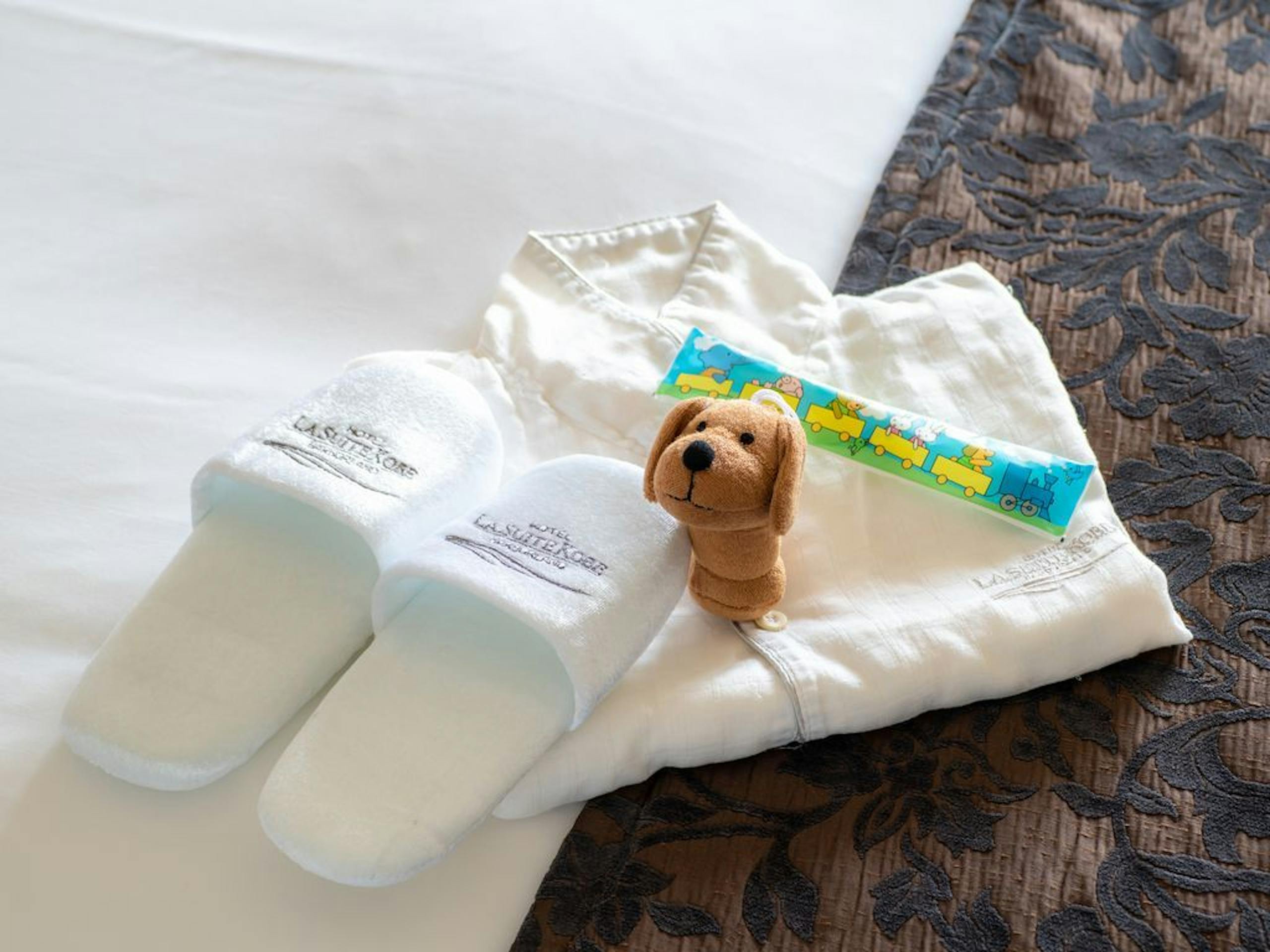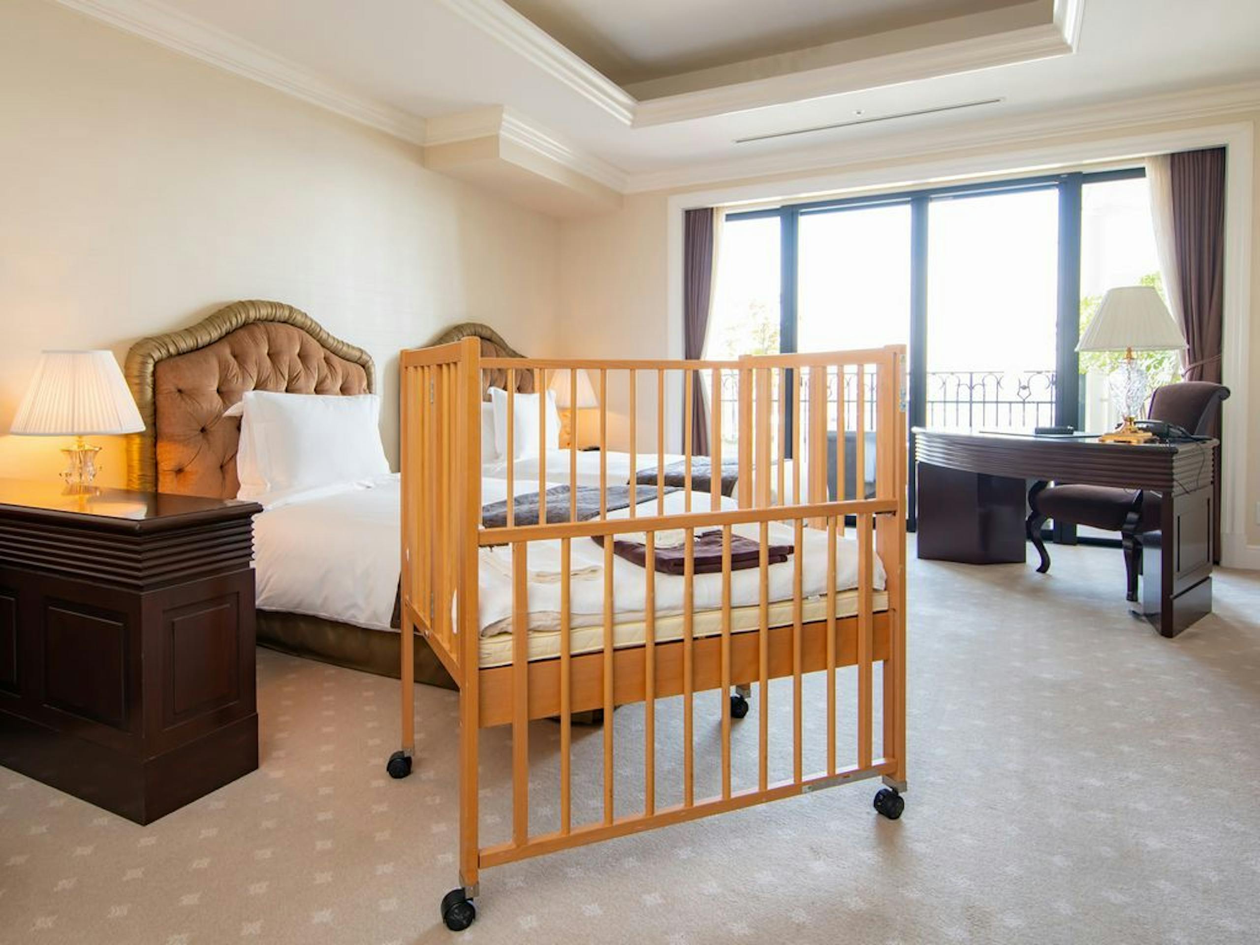 - ベビーベッド、ベビーサークル、ジョイントマット、ベッドガード、子供用バスチェア、子供用パジャマなど、子供連れに便利な設備が充実している。