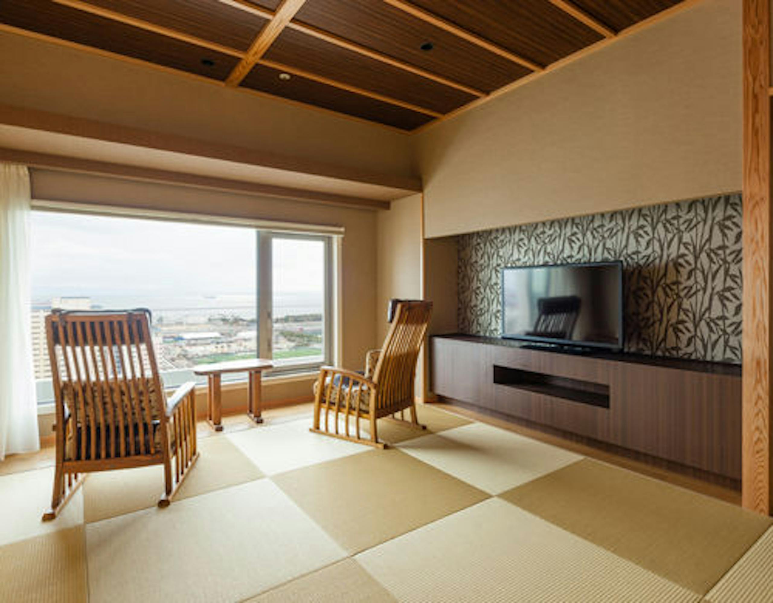- 絵に描いたような神戸の街並みと海が広がる客室