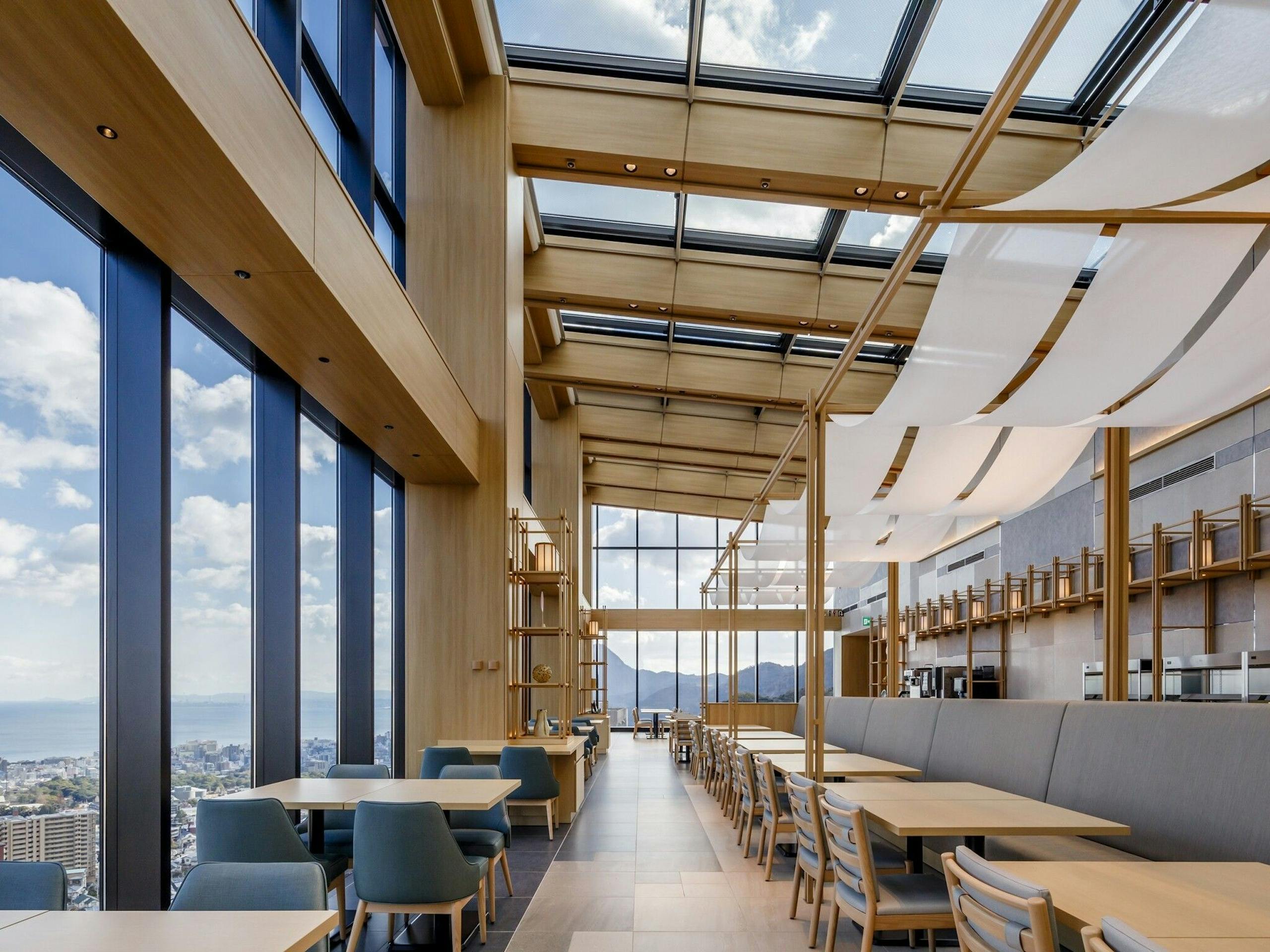 地元食材を使った和モダンのビュッフェを、別府で最も空に近いレストランで楽しむ体験は特別なものですよ!